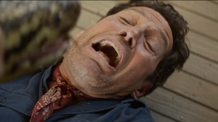 Студия Sony Pictures поделилась первым роликом о съёмках ремейка ужастика «Анаконда». Коварный замысел современников в том, что их фильм уже не банальный хоррор, а синефильская комедия с элементами змеи, которая иногда всё-таки жрёт людей.
